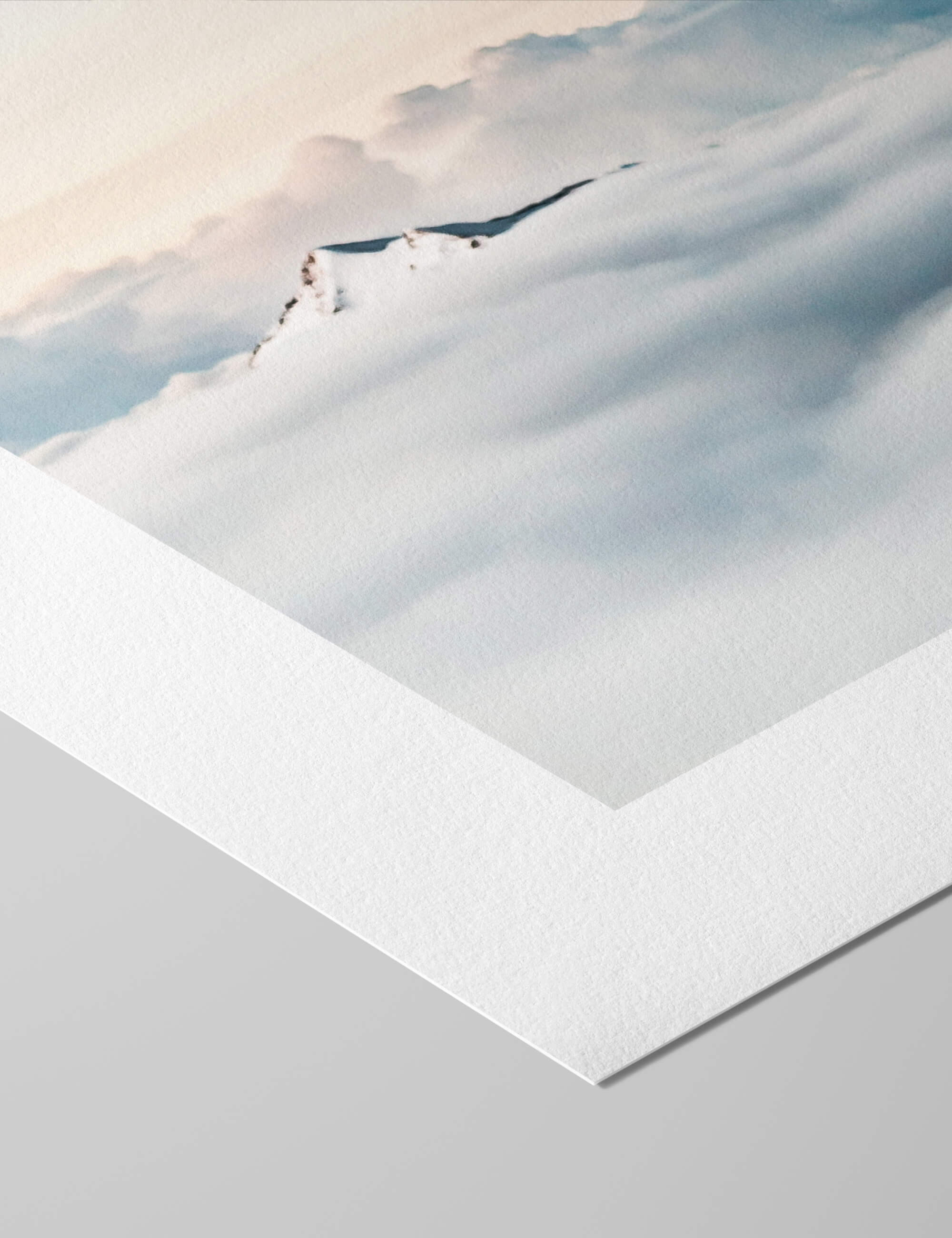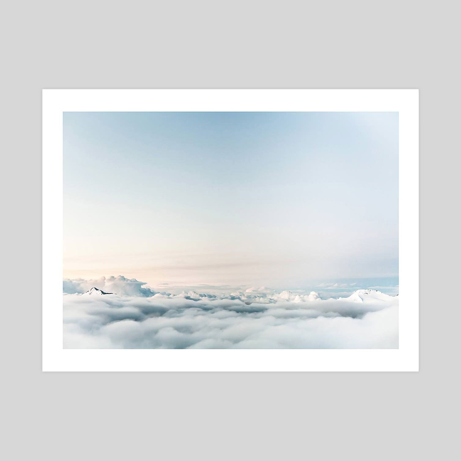 This beautiful photograph capturing mountain peaks poking through a pillowy bed of clouds will lend a mood of calm and tranquility to any interior. We love it as a feature artwork for the bedroom or living room. This premium quality giclee art print has been produced on luxurious 100% cotton rag textured art paper using archival quality inks resulting in a superior print suitable for museum or gallery display.