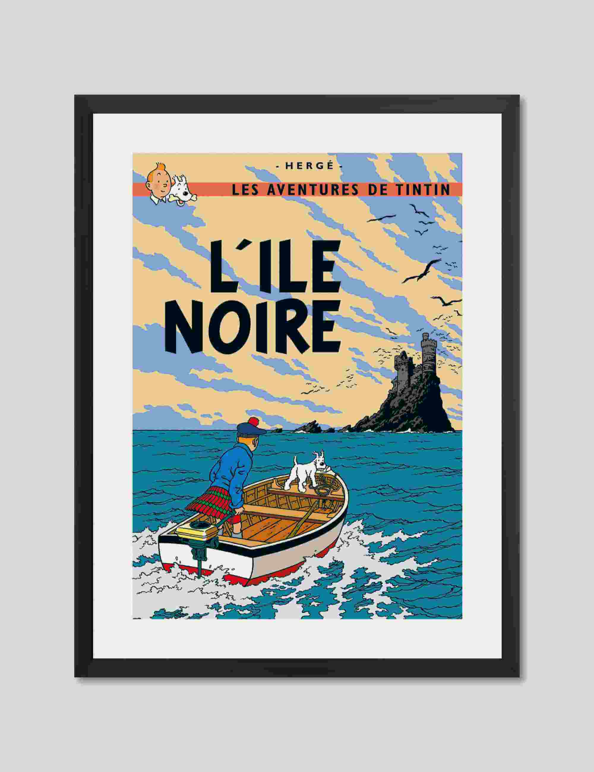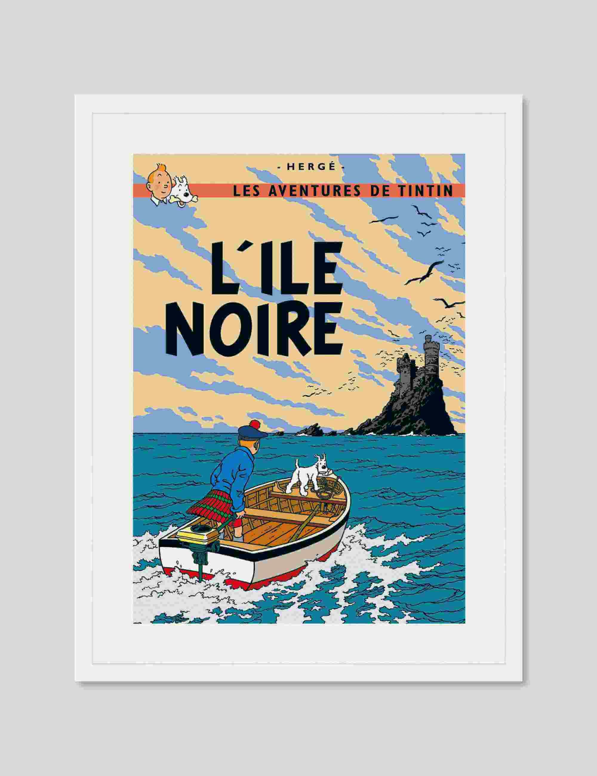 L'ile Noire, first published in 1938, is the seventh instalment of The Adventures of Tintin, a series of classic comic-strip albums, written and illustrated by Belgian writer and illustrator Hergé, featuring the young reporter Tintin as the hero. This premium quality giclee art print has been produced on luxurious 100% cotton rag textured art paper using archival quality inks resulting in a superior print suitable for museum or gallery display.