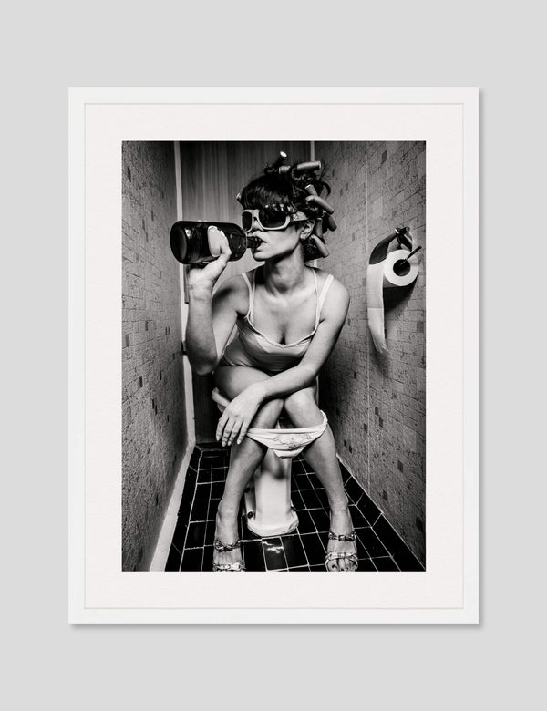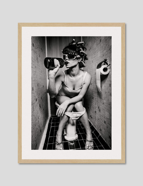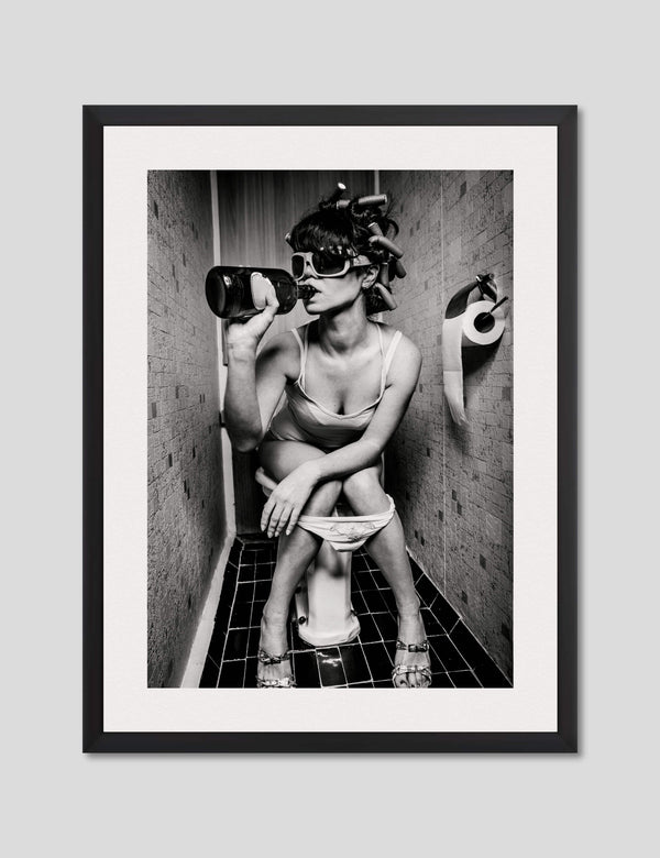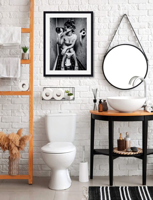 Believe it or not we receive quite a few requests for art recommendations for the toilet. I guess people want something to look at to pass the time? Giving someone toilet art recommendations is not the easiest of tasks mind you. When we ask for a bit more guidance the usual response is '"I'm after something humorous." On that account we think we've absolutely nailed the brief with this ever so naughty, no holds barred artwork fittingly titled The Ladies Room (Twin Sister). Technically this charming your woman is the pretender to the throne of the original The Ladies Room though we think she's a formidable challenger when it comes to debaucherous restroom behaviour!