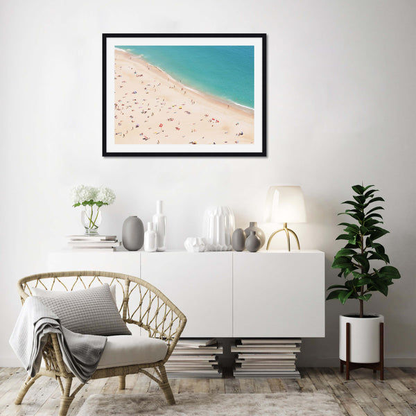 Aerial beach photography remains a popular art trend that shows no signs of abating. First popularised by Los Angeles photographer Grey Malin this stunning artwork is one of our absolute favs in the style. This evocative artwork will afford a mood of calm and wonder to any setting. The perfect feature artwork for your bedroom or living room.