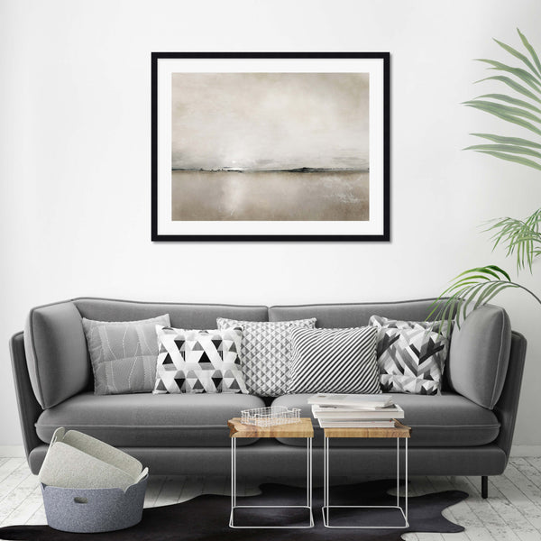 This stylish abstract artwork by British artist Dan Hobday will make a stunning addition to your home decor. The soft neutral colours, compelling textures and subtle details that Dan draws on in creating this minimalist abstract artwork are an absolute delight. The end result a truly captivating work that commands attention. Sunlight Bay works wonderfully in modern and Scandinavian influenced interiors and is perfectly suited as a feature artwork for your living room.