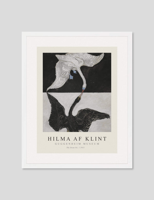 In this series, af Klint blends such established symbolism with her own idiosyncratic interpretations. The first painting portrays two swans – one black (male, with yellow beak), the other white (female, with blue face and feet). This stark palette underscores the dualities of light and dark, male and female, life and death.