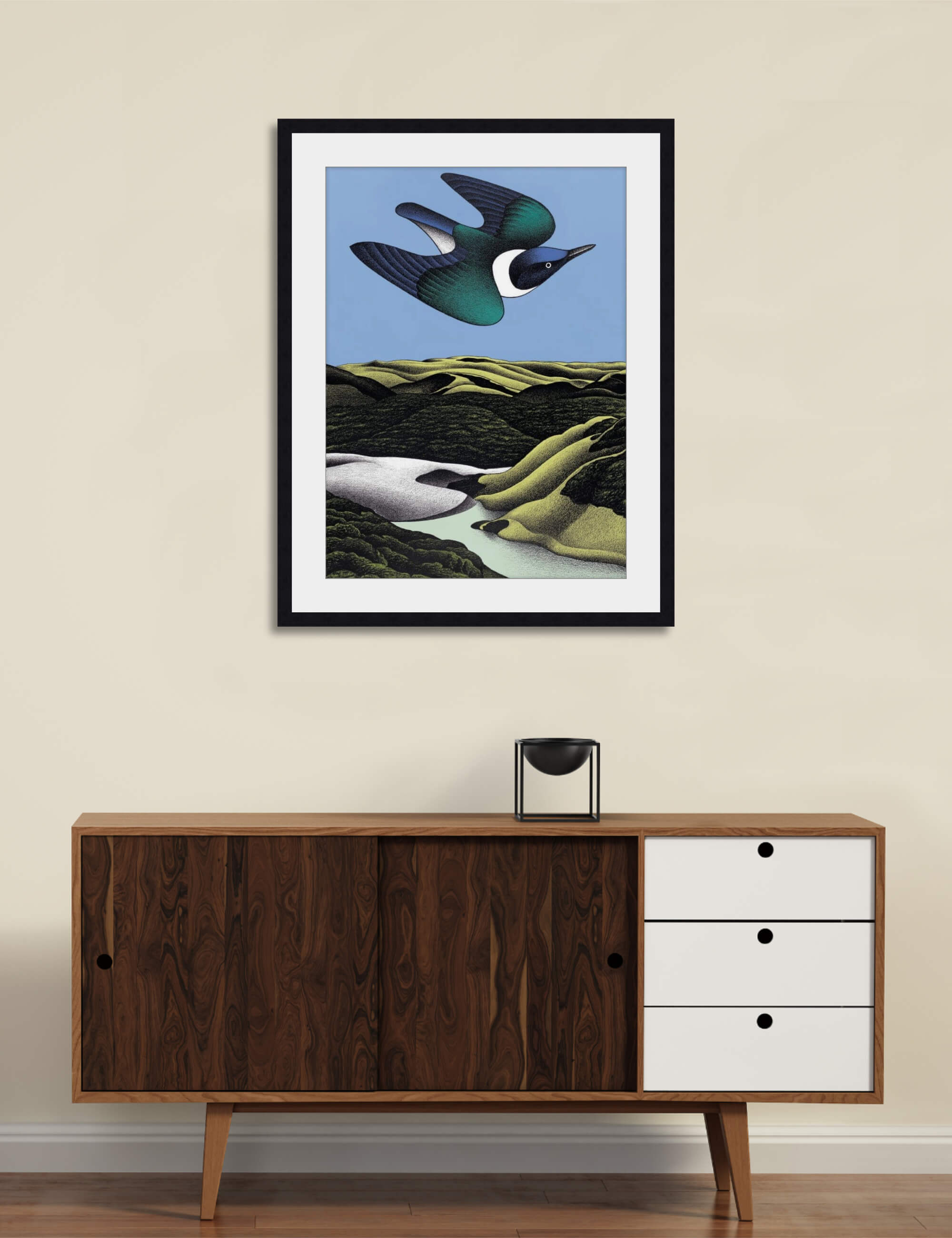 - This art print is framed with a mat
