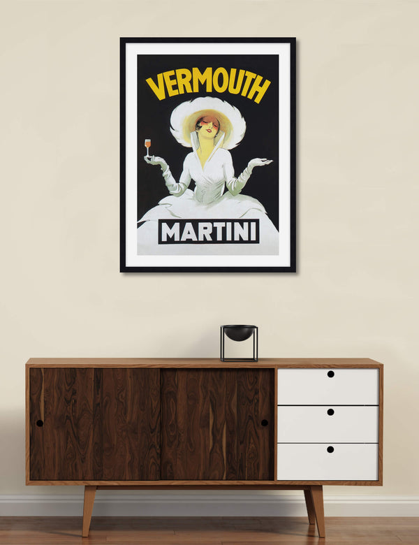 This perennially stylish vintage poster was originally created for Martini Vermouth by renowned Italian poster designer, Marcello Dudovich, in 1918 and issued a second time for use in bars and cafes selling Martini in the 1950's. This gallery quality giclee art print reproduction has been produced on luxurious 100% cotton rag textured art paper using archival inks that won't fade over time resulting in a superior art print with sharp detail, vivid colour and unparalleled durability.